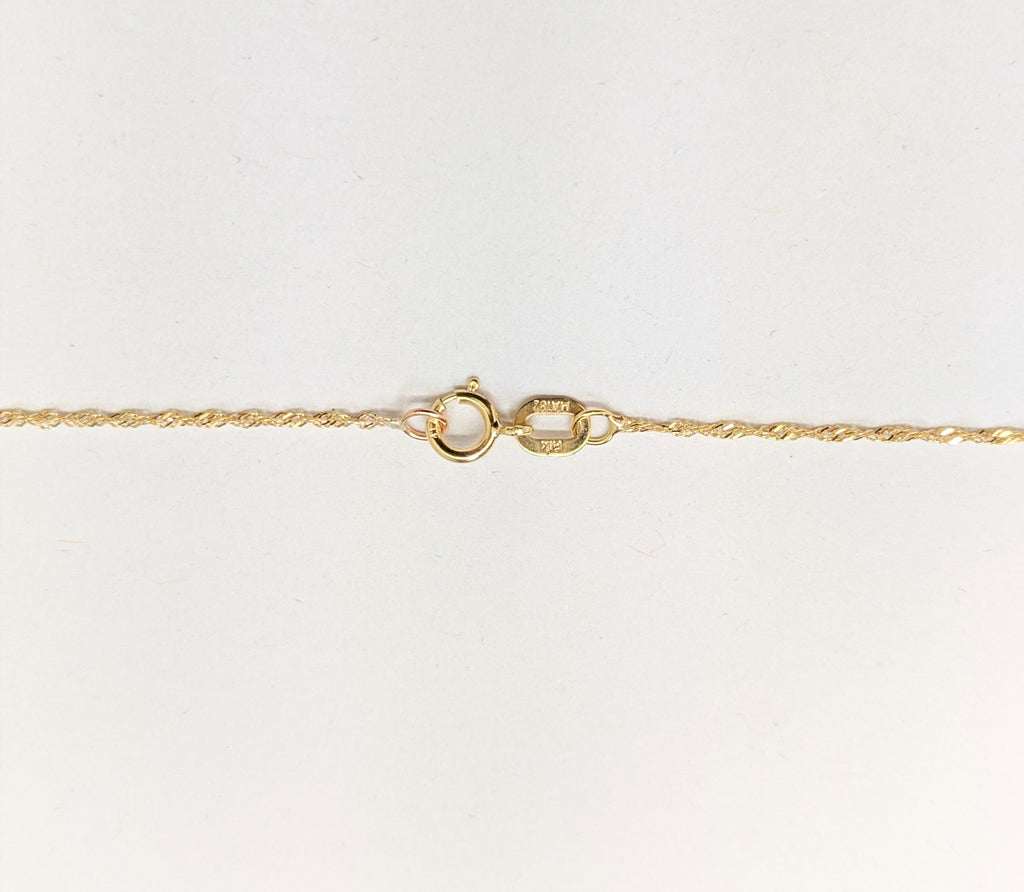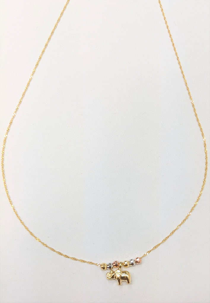 Gargantilla de Elefante en oro amarillo de 10k y zirconias. Cadena de 45 centímetros. Medidas aproximadas del dije 1.0 cm de largo por 0.5 cm de alto.